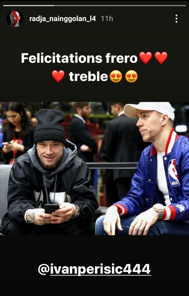 "Congratulazioni, fratello. Treble!". Radja Nainggolan si è complimentato su Instagram attraverso una story con il suo ex compagno ai tempi dell'Inter Ivan Perisic.