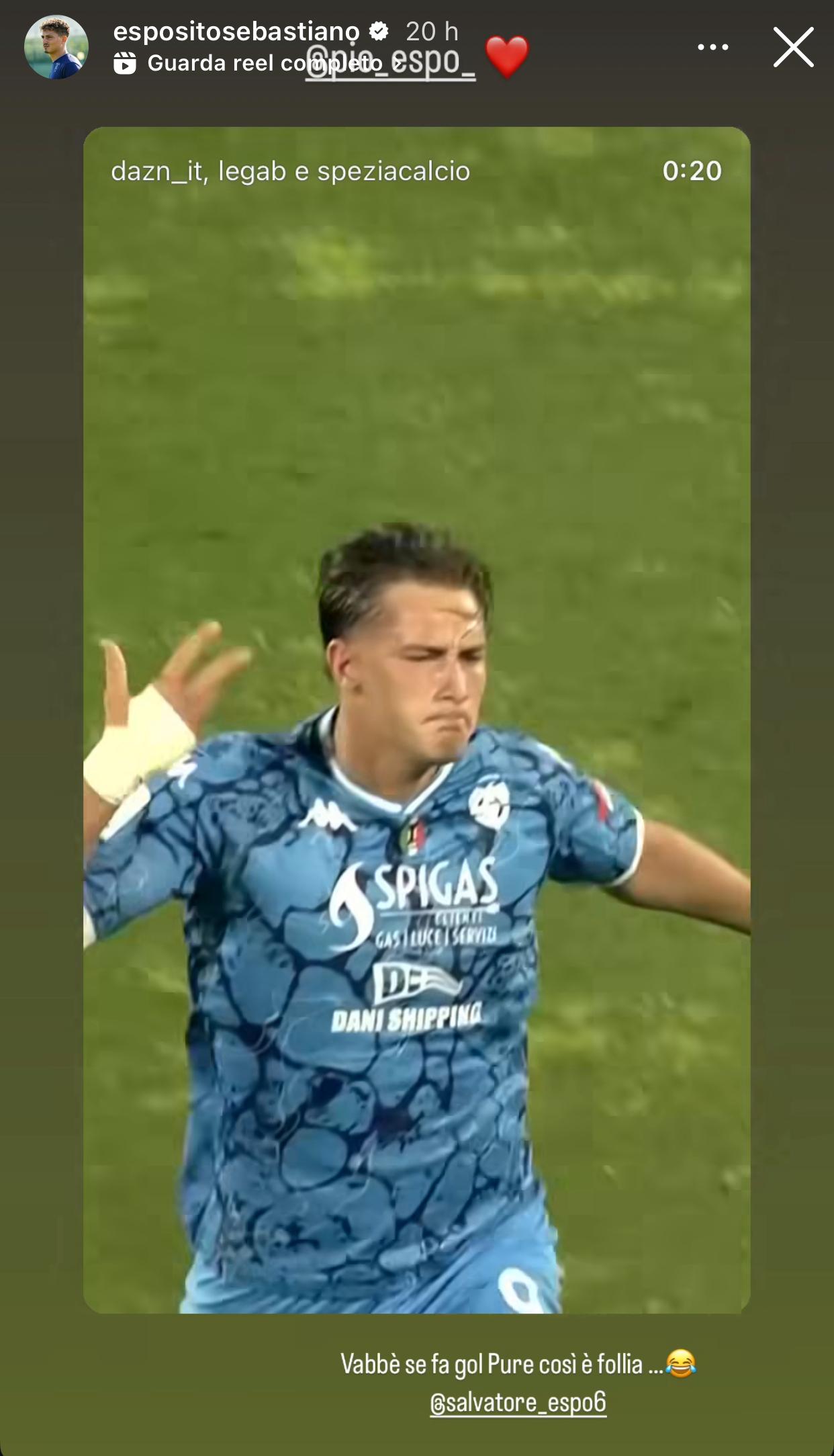 Ad esaltare Francesco Pio Esposito ci ha pensato anche il fratello Sebastiano, sempre di proprietà dell'Inter ma in prestito all'Empoli: "Vabbè se fa gol pure così è follia", il commento simpatico di Sebastiano.