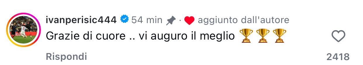 fcinter1908 social “Quanto ti avrei voluto di nuovo all’Inter”. Perisic risponde così e augura lo scudetto