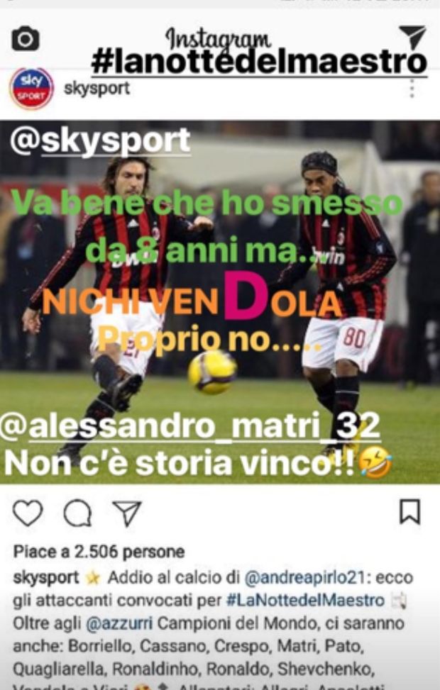 Alla Notte del Maestro, la partita d'addio al calcio di Andrea Pirlo, parteciperanno in tantissimi ex giocatori. Tra loro anche l'ex attaccante nerazzurro, Nicola Ventola. Per errore Sky, nella lista dei convocati, ha scritto Nicola Vendola (politico) invece che Ventola. Il primo ad accorgersene è stato proprio Nicola: "Va bene che ho smesso da 8 anni, ma Nichi Vendola proprio no...".