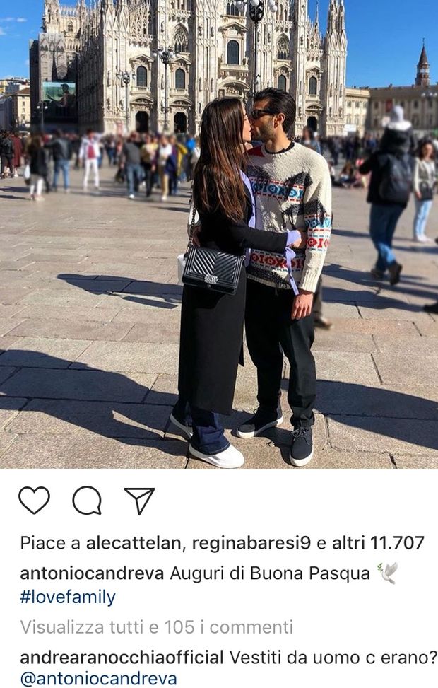Antonio Candreva ha festeggiato la Pasqua a Milano, approfittando di una bella giornata di sole. Una domenica in famiglia, con la fidanzata Allegra. Ma il look sfoggiato in alcuni scatti in Piazza Duomo non hanno convinto il compagno nerazzurro Andrea Ranocchia, che sui social lo ha sfottuto: "Non c'erano vestiti da uomo?". Antonio è stato allo scherzo e ha risposto ironicamente: "Me lo hai regalato tu".