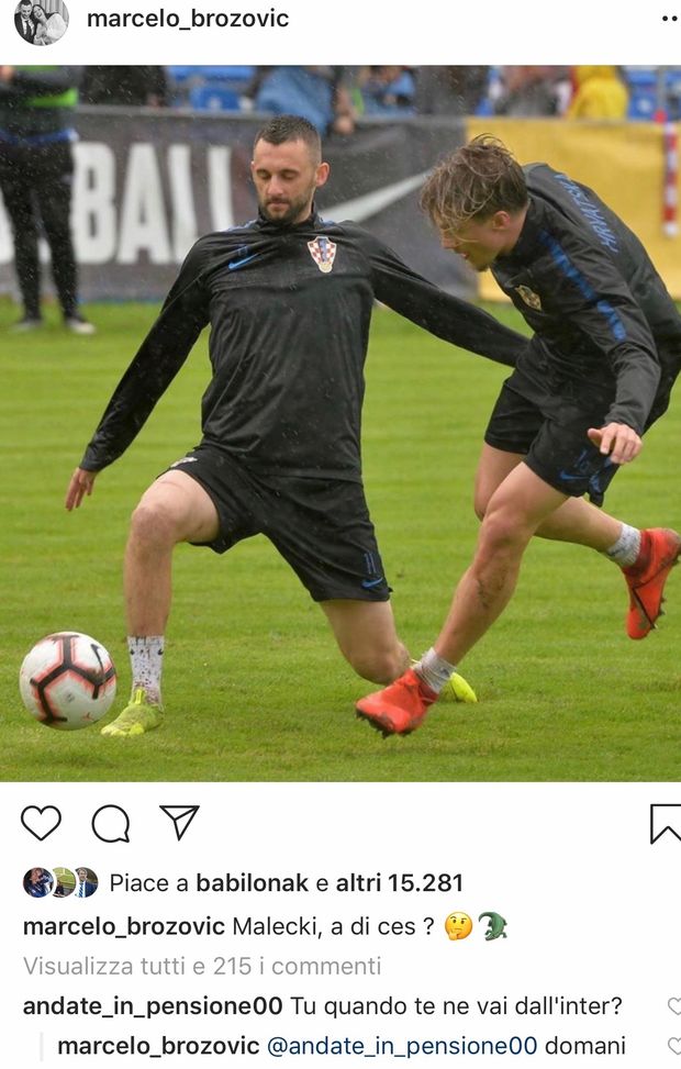Inizia una nuova era in casa Inter. Da oggi l'allenatore è Antonio Conte, l'annuncio ufficiale del club è comparso all'alba. Presto lo conosceranno anche i calciatori nerazzurri, che sono in vacanza. Marcelo Brozovic, dopo aver postato una foto con un compagno della nazionale (nella quale gli chiedeva dove stesse andando), è stato protagonista di un botta e risposta sui social con un tifoso, che gli ha chiesto senza mezze misure: "Tu quando te ne vai dall'Inter". Risposta secca del centrocampista croato: "Domani". I tifosi si sono subito schierati dalla parte del giocatore nerazzurro dicendogli che deve assolutamente rimanere, Nainggolan (che ama sfottere Marcelo sui social) è intervenuto con una grassa risata a sdrammatizzare.