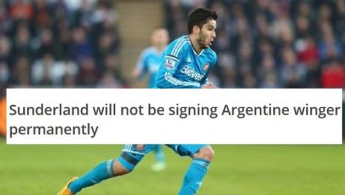 Anche il Northern Eco scrive che il Sunderland non riscatterà Ricky Alvarez. Secondo il quotidiano inglese, infatti, all'interno del contratto dell'argentino sarebbe stata inserita una clausola relativa alle presenze che permetterebbe ai Black Cats di rispedire Alvarez all'Inter. Cosa che, scrive il Northern Eco, verrà fatta perché Poyet, sponsor di Alvarez, è stato esonerato e perché i dirigenti non sono rimasti soddisfatti dell'annata dell'ex Velez.