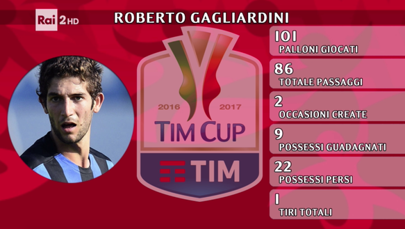 In sole due partite, Roberto Gagliardini si è già preso l'Inter. Dopo una grande prestazione al suo debutto con la maglia nerazzurra contro il Chievo, il centrocampista si è ripetuto in Coppa Italia contro il Bologna. Onnipresente, grande senso della posizione e tanti inserimenti all'interno dell'area, ha fatto un po' di tutto stasera. A testimonianza della grande prestazione del giocatore, anche una grafica della Rai in cui il centrocampista è stato uno dei giocatori che ha toccato più palloni, 101. Sono 86 i passaggi realizzati, 2 occasioni create, 9 possessi guadagnati, 22 possessi persi e 1 tiro.