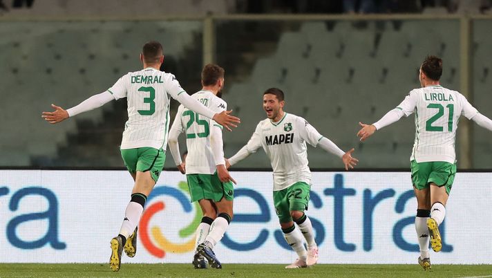 Basta un gol di Domenico Berardi al Sassuolo per vincere 1-0 contro la Fiorentina al Franchi. La squadra viola colleziona il terzo KO nelle ultime quattro - solo tre punti nelle ultime sei partite - e ora si ritrova al 12° posto in classifica a 40 punti. Sale a 41, invece, il Sassuolo che si ritrova al decimo posto. La Fiorentina ha sprecato anche un calcio di rigore con Veretout, il cui tiro è stato ben respinto da Consigli.