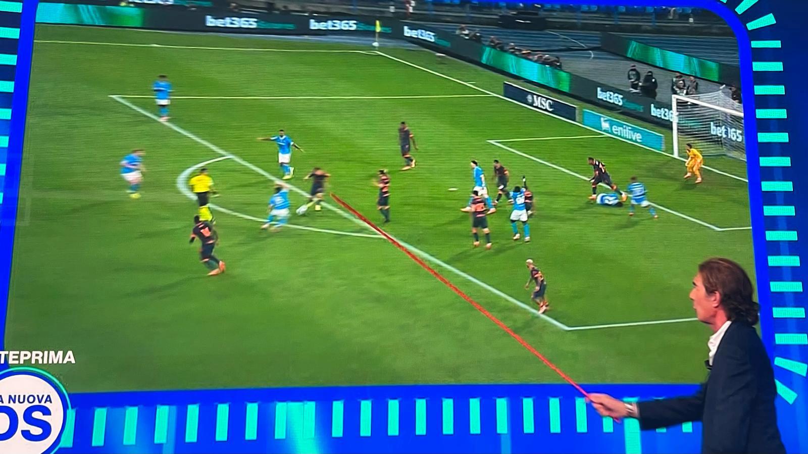 —"Il contatto tra i due è leggerissimo. Un gesto antisportivo questo, mi sarei aspettato che il Var richiamasse davanti al monitor il direttore di gara per fargli vedere questa gamba sinistra che si allarga in modo improprio a creare un inganno. Per me qua non è mai calcio di rigore e ci poteva stare il cartellino giallo per l'antisportività del giocatore del Napoli", aggiunge e conclude Bergonzi con decisione.
