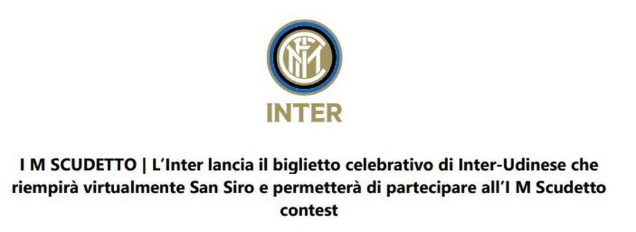 L'iniziativa è stata spiegata dal club nerazzurro in una nota. "Sarà possibile riempire virtualmente San Siro grazie all’I M Scudetto Ticket che tutti tifosi potranno scaricare qui gratuitamente. L’iniziativa è realizzata in partnership con RDS, Official Radio dell’Inter, e si inserisce all’interno delle iniziative promosse dal Club nerazzurro per invitare i tifosi a festeggiare responsabilmente e in sicurezza", si legge.