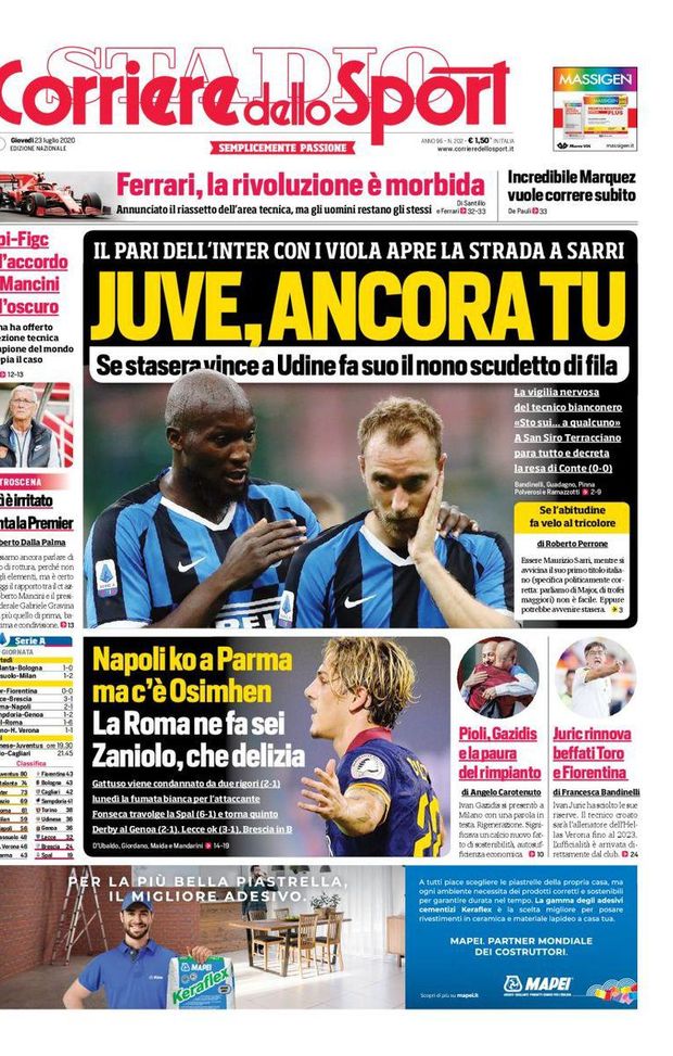 EDICOLA CDS – Juve, ancora tu. A San Siro Terraciano para tutto e segna la resa di Conte