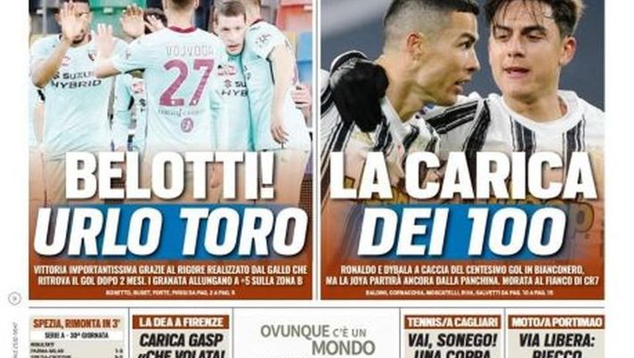 La prima pagina del quotidiano sportivo, in edicola domani, con la sfida tra la capolista Inter e il Cagliari in primo piano