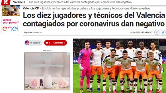 Intanto però la stampa spagnola fa sapere che il secondo test al quale sono stati sottoposti i dieci giocatori e lo staff tecnico hanno dato esito negativo. Si era saputo solo della positività di Mangala, Garay e Gaya. Quello spagnolo è il club più colpito dalla malattia e pare che sia stata centrale nel contagio la partita contro l'Atalanta che si è giocata al Meazza.