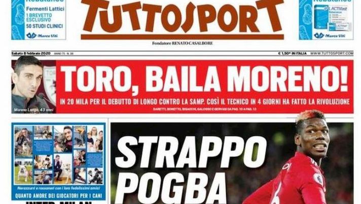 TuttoSport ha deciso di parlare del derby in maniera sicuramente singolare per una prima pagina. Lo ha fatto parlando di derby a quattro zampe, nel senso che sono tanti i giocatori dell'Inter e del Milan che condividono la passione per i cani. "Inter-Milan, il derby si gioca anche a quattro zampe" è il titolo dedicato alla gara di domenica sera. Titolo principale su Pogba e la rottura con il Manchester United: la Juve ci crede.
