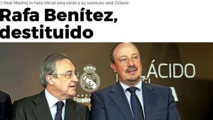 Rafa Benitez, di fatto, non è più l'allenatore del Real Madrid. L'annuncio lo danno ormai tutte le principali testate spagnole, a partire da Marca. Benitez sarà sostituito da Zinedine Zidane, attualmente tecnico del Real Castilla. Benitez paga il 2-2 sul campo del Valencia.