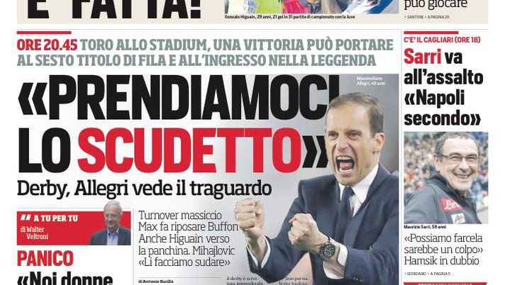 EDICOLA CDS – Allegri vede il traguardo: “Prendiamoci lo scudetto”. Muntari, giustizia è fatta