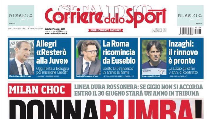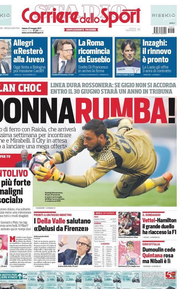 EDICOLA CDS – Donnarumma, linea dura del Milan. Roma, scelto Di Francesco