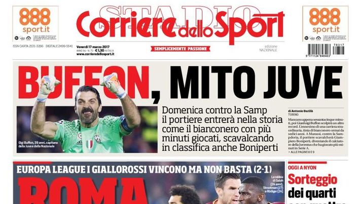 EDICOLA CdS – EL: Roma, è un peccato: Buffon nella storia della Juventus