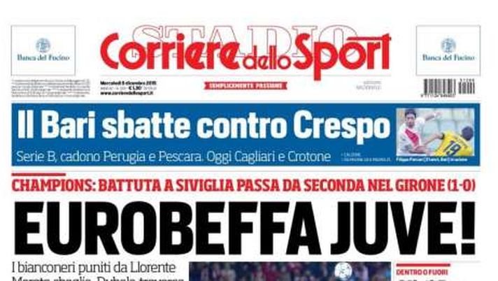 Sulla Champions: "Eurobeffa Juve. Perde col Siviglia e chiude seconda il girone".