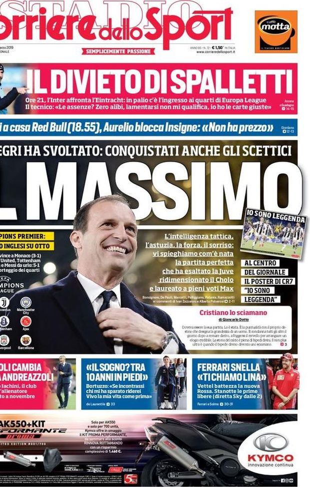 EDICOLA CDS – “Il divieto di Spalletti”. L’Inter affronta l’Eintracht, in palio i quarti di EL