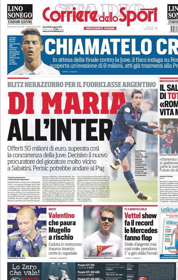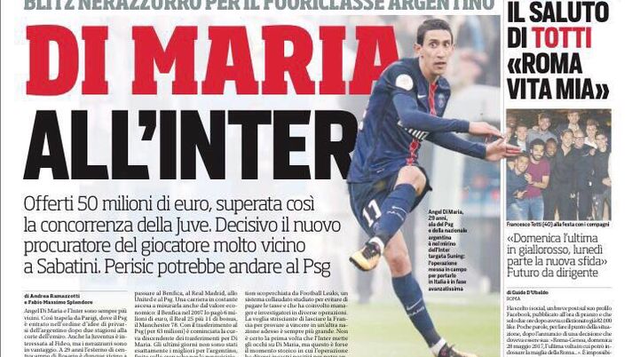 EDICOLA CDS – Inter, blitz per Di Maria: offerta da 50 milioni di euro