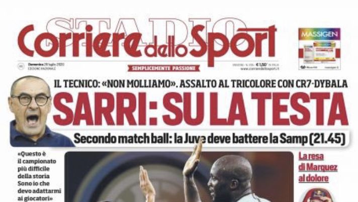Vince l’Inter di Antonio Conte e cattura anche il titolo principale della prima pagina del Corriere dello Sport in edicola domani mattina. Nerazzurri di nuovo secondi con i tre punti conquistati grazie ai gol di Lukaku e Sanchez.