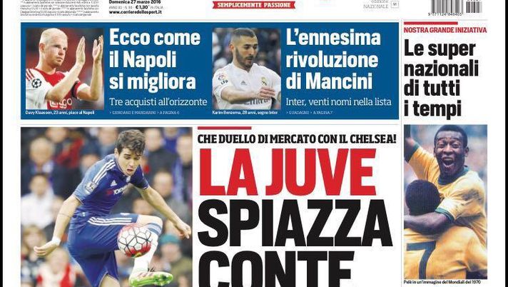 Al'indomani del titolo in prima pagina dedicato all'interesse dell'Inter nei confronti di Karim Benzema, il Corriere dello Sport insiste su questa linea. Mancini avrebbe in atto un'altra rivoluzione: e così, accanto all'immagine del fuoriclasse del Real Madrid, il quotidiano romano ha dedicato all'Inter questo titolo: "L'ennesima rivoluzione di Mancini. Inter, venti nomi nella lista".