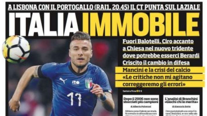 EDICOLA / CdS: Italia-Immobile. Fuori Balotelli. Mancini: “Le critiche non mi agitano”