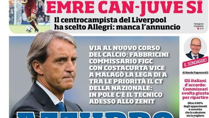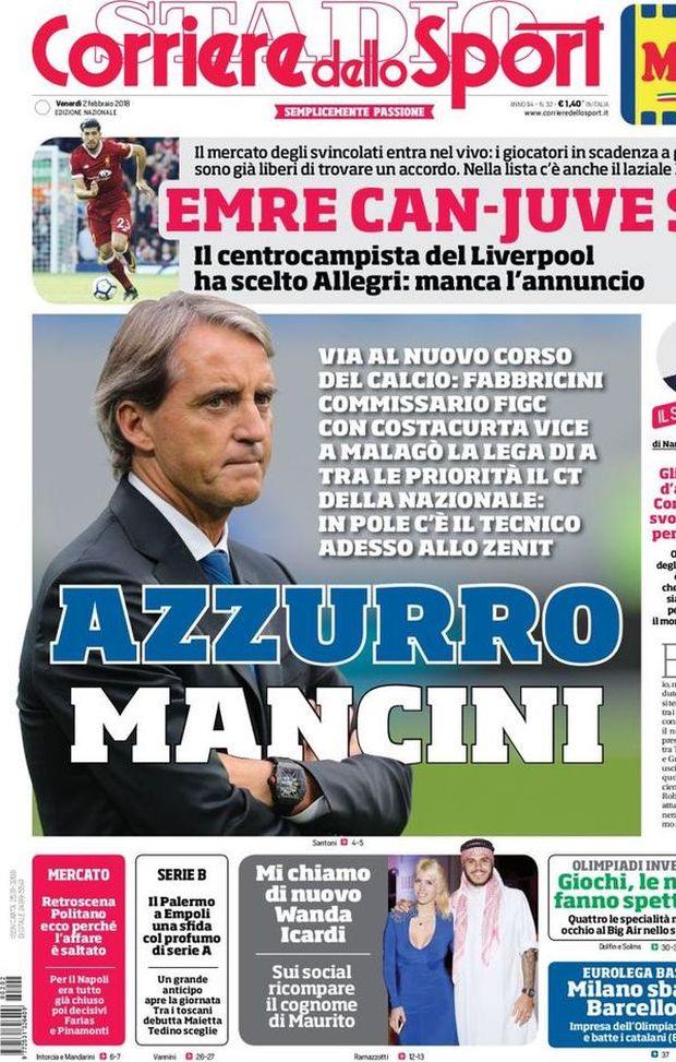 EDICOLA / CdS: Italia, Mancini in pole per la panchina. Wanda si chiama di nuovo Icardi