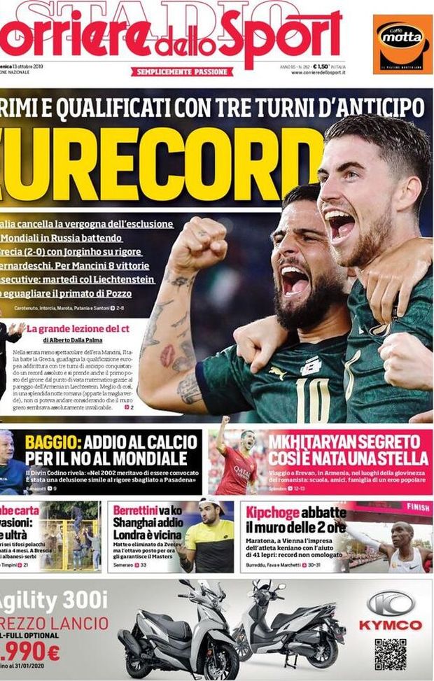 EDICOLA / CdS: Eurecord, primi e qualificati. Per Mancini 8 vittorie consecutive con l’Italia