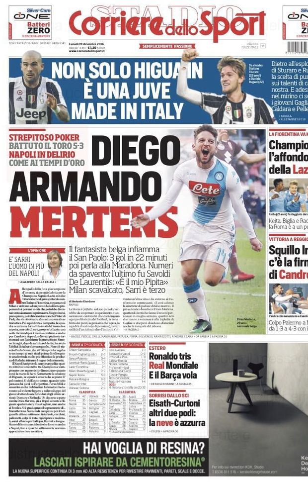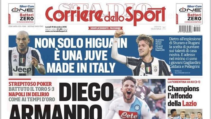 La prima pagina del Corriere dello Sport del 19 dicembre 2016