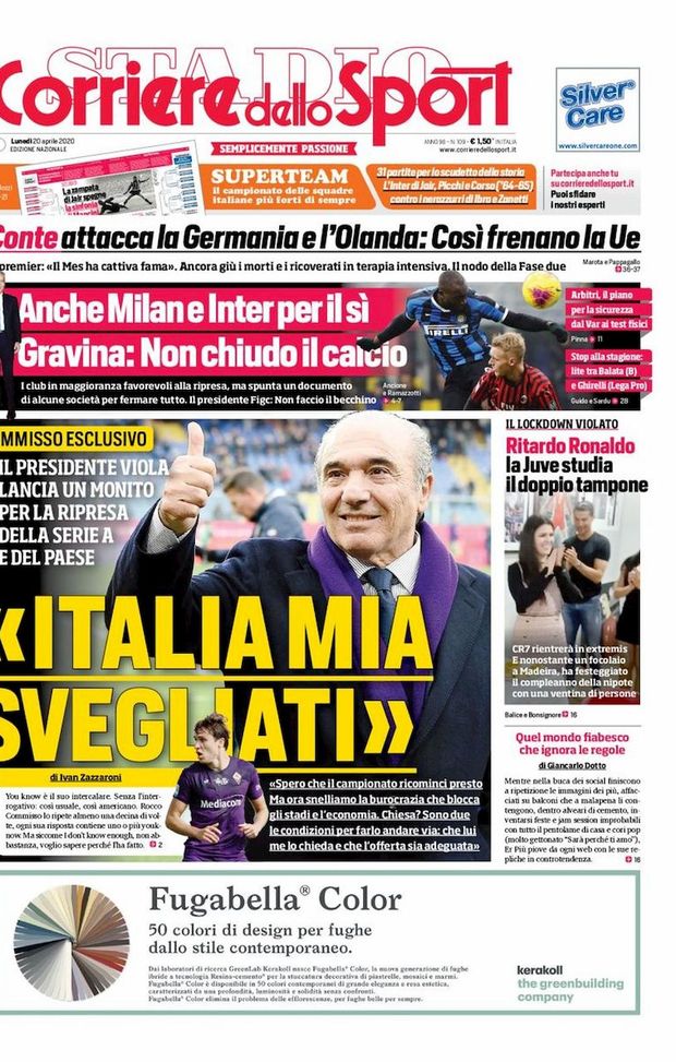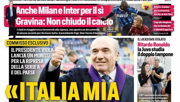 Sulla prima pagina del Corriere dello Sport in edicola nelle prossime ore viene proposta un'intervista al presidente della Fiorentina, Rocco Commisso, in cui il numero uno viola parla anche del futuro di Federico Chiesa, obiettivo di mercato dell'Inter.