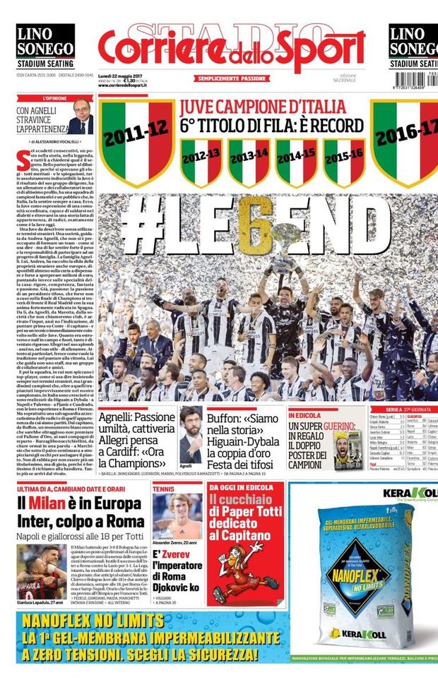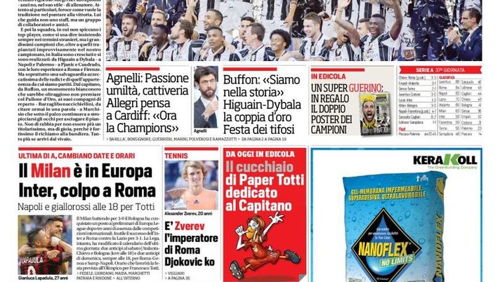 Sul Corriere dello Sport si parla anche di Inter e della vittoria con la Lazio arrivata dopo 8 turni senza trovare i tre punti. Questa la prima pagina del quotidiano sportivo: