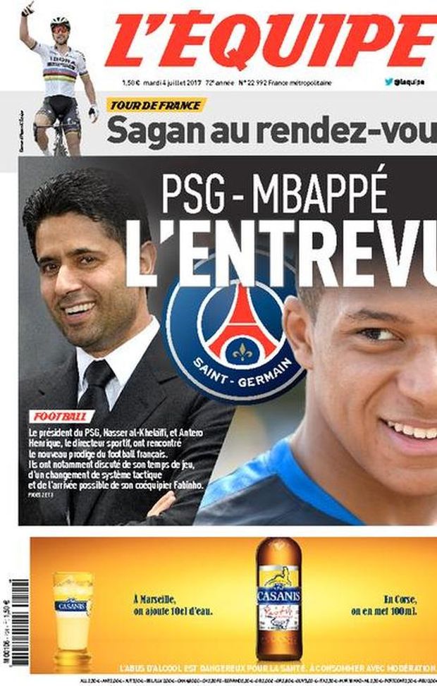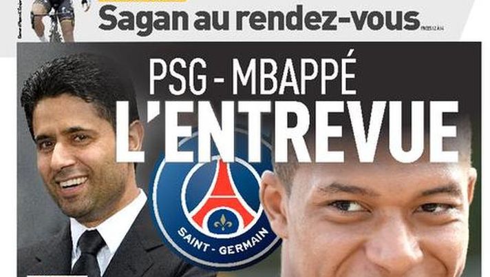 Il PSG spiazza il Real Madrid e punta dritto su Mbappé. L'Equipe, noto quotidiano francese, in prima pagina, parla del "colloquio" che ci sarebbe stato tra il presidente del club francese Nasser Al-Khelaifi, il ds Henrique e lo stesso calciatore. "Lo hanno incontrato e hanno discusso dei suoi tempi di gioco, dei cambiamenti del sistema tattico e del possibile arrivo del suo compagno Fabinho", scrive il quotidiano.