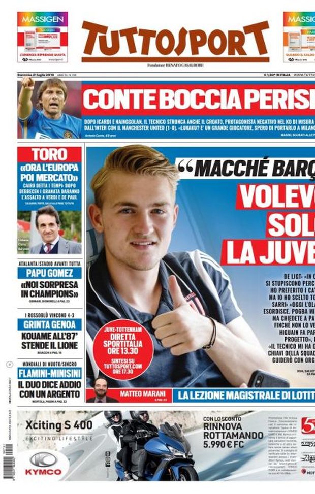 EDICOLA – TS, Conte boccia Perisic. De Ligt: “Volevo solo la Juve”.