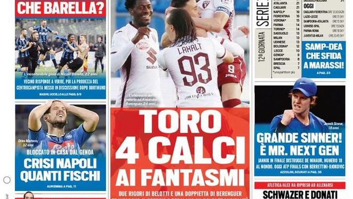 La sera in cui ha nominato proprio loro due, dopo la sconfitta a Dortmund, era per dire che manca l'esperienza utile in Europa. Non voleva certo dire non fossero bravi abbastanza. Lo pensasse forse, il mister non sarebbe saltato all'aria in quel modo per lo stratosferico gol che il centrocampista sardo ha regalato ai tifosi interisti. Proprio su quello titola il quotidiano sportivo TuttoSport in prima pagina: "Conte, visto che Barella? Vecino risponde a Verre, poi la prodezza del centrocampista messo in discussione dopo Dortmund". Era stata messa in discussione la sua esperienza nelle competizioni europee non le sue qualità indiscutibili.