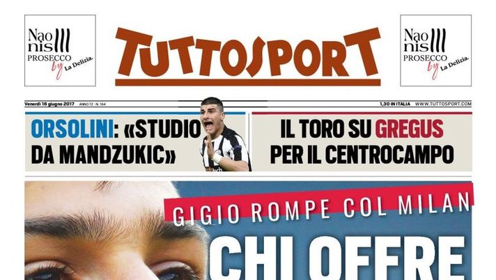 Questo il titolo: "Gigio rompe col Milan. Chi offre di più? Donnarumma e Raiola rifiutano il rinnovo del contratto in scadenza nel 2018. Quattro club alla finestra se i rossoneri decideranno di non perdere il portiere il prossimo anno a parametro zero".