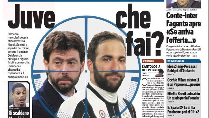 "Idea Zhang-Percassi: Gabigol all'Atalanta". Questo il titolo sul mercato nerazzurro riportato dalla prima pagina di TuttoSport di domani mattina. Spazio anche all'intrigo Conte e alle parole rilasciate in giornata dal suo procuratore.
