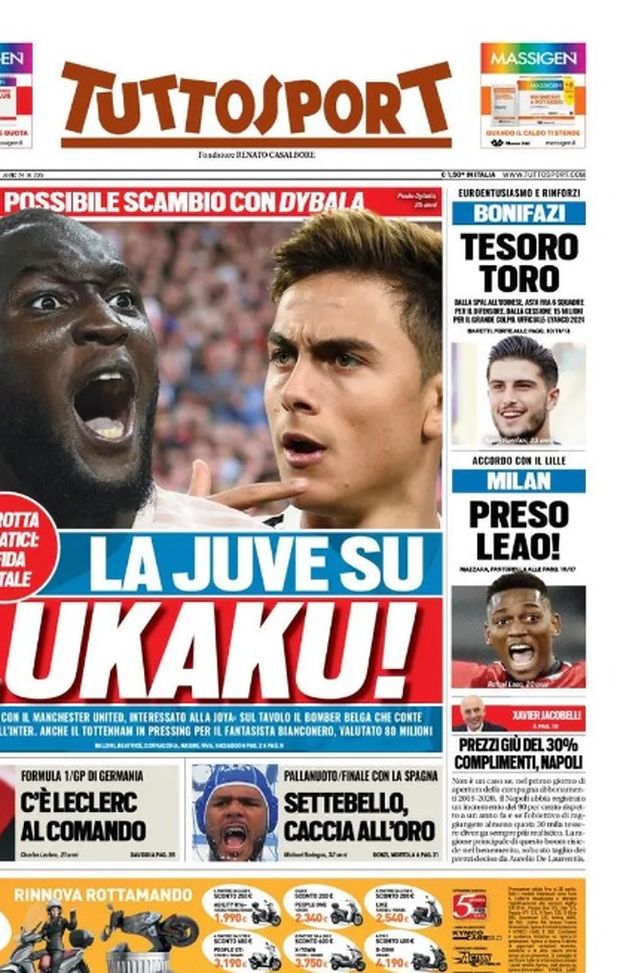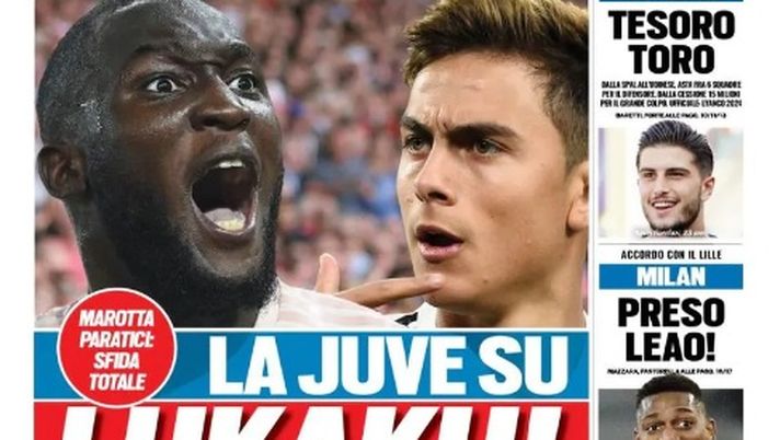 Su Tuttosport del 27 luglio 2019 la prima pagina non poteva che essere dedicata alla bomba della tarda serata, ovvero l'inserimento della Juventus nella trattativa Lukaku, il bomber voluto da Antonio Conte e dall'Inter: