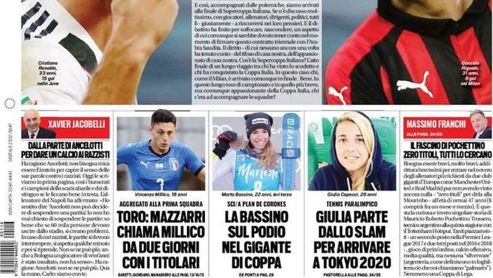 EDICOLA / TS: Supercoppa Italiana, Juve-Milan: Cristiano D’Arabia e Pipita di rabbia
