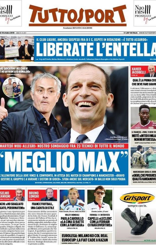 EDICOLA / TS, tra Mou e Allegri “E’ meglio Max”. Meitè: “Inter o Milan? Non mi interessa”