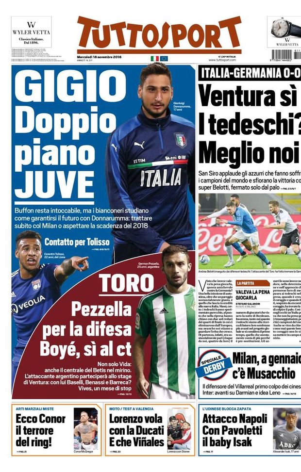 L'edizione odierna di Tuttosport del 16 novembre 2016