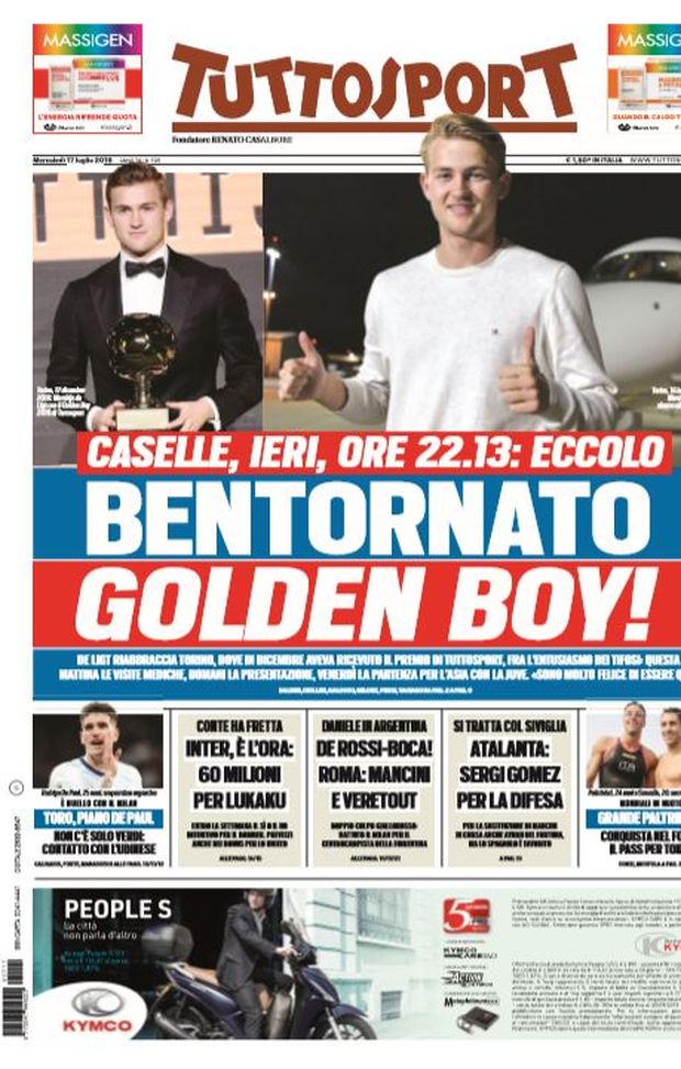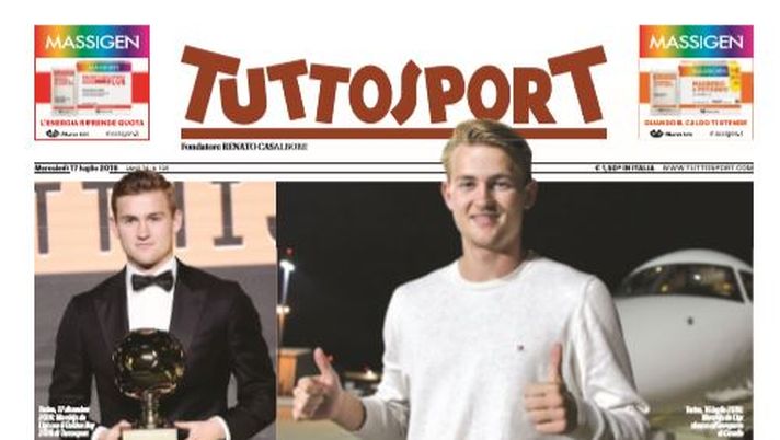 Tuttosport del 17 luglio 2019 dà, ovviamente, ampio spazio allo sbarco di De Ligt a Torino: "Bentornato Golden Boy!" riferendosi ovviamente a quando il difensore olandese era venuto in Italia ad aprile per incontrare la Juventus in Champions League.