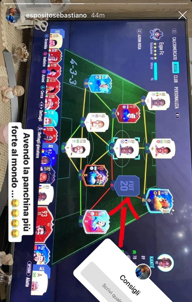 Il giovane attaccante dell'Inter Sebastiano Esposito è un grande appassionato di videogame e chiede consiglio ai suoi follower per migliorare la sua squadra a Fifa Ultimate Team. Tra i consigli ci sono anche quelli relativi a due sue giovani compagni dell'Inter che si propongono per la sua formazione: Bastoni e Agoume. Queste le risposte di Esposito: