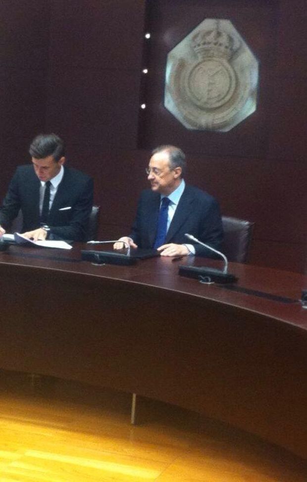Gareth Bale è un giocatore del Real Madrid. Ecco l'ex Spurs nell'atto di firmare il contratto con il suo nuovo club. Un trasferimento record quello del gallese che approda alla corte di Carlo Ancelotti. Per un campione che parte eccone uno fresco fresco in arrivo