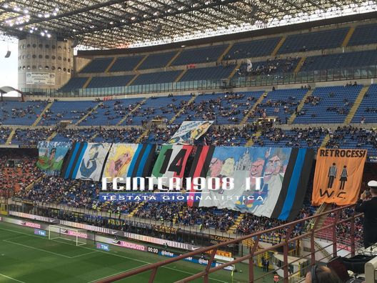 E' l'ultima al Meazza e la Banda Bagaj al secondo anello blu ha deciso di riesporre gli striscioni che hanno fatto la loro storia di tifosi. C'è il 14 che era spuntato quando era stato assegnato lo scudetto a tavolino all'Inter di Moratti. Il 30 sul campo con Agnelli, il sorpasso al Milan quando i nerazzurri hanno vinto il 18esimo e pure un José Mourinho vestito da mago: "Dieci anni di colori", hanno scritto in uno striscione i sostenitori interisti per celebrare il loro decimo anniversario.