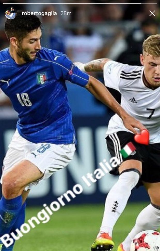 Ieri la Nazionale Under 21 ha battuto la Germania e il nerazzurro Roberto Gagliardini, autore di una buona prestazione da titolare, ha voluto celebrare su Instagram questo successo importante.
