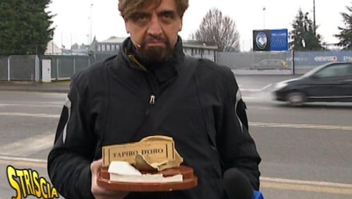 L’inviato di Striscia la notizia ha provato a consegnare il Tapiro d’oro al calciatore dell’Atalanta Alejandro “Papu” Gomez. Ma il funambolico giocatore argentino ha inizialmente eluso la marcatura del tg satirico, sprintando fino a un parcheggio adiacente la sede degli allenamenti della squadra bergamasca.