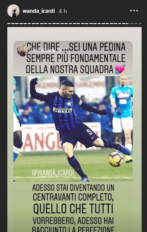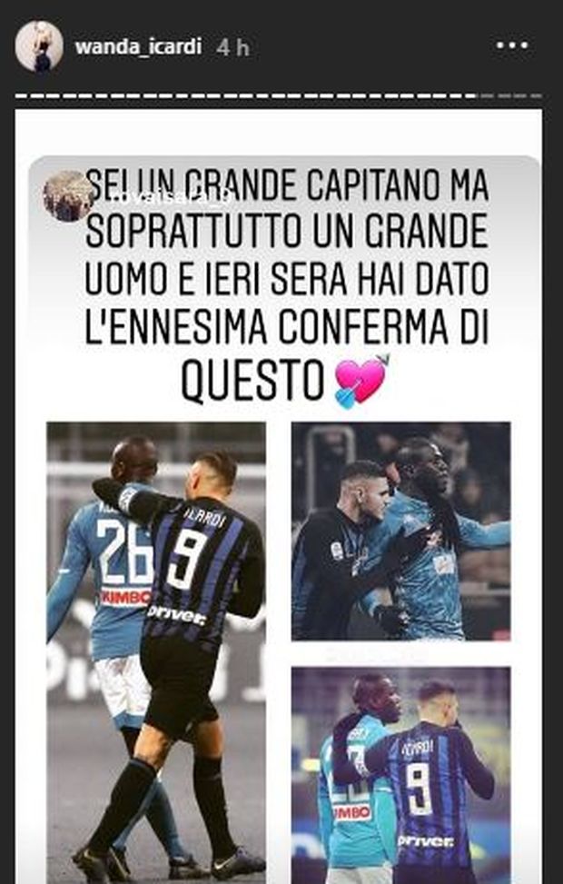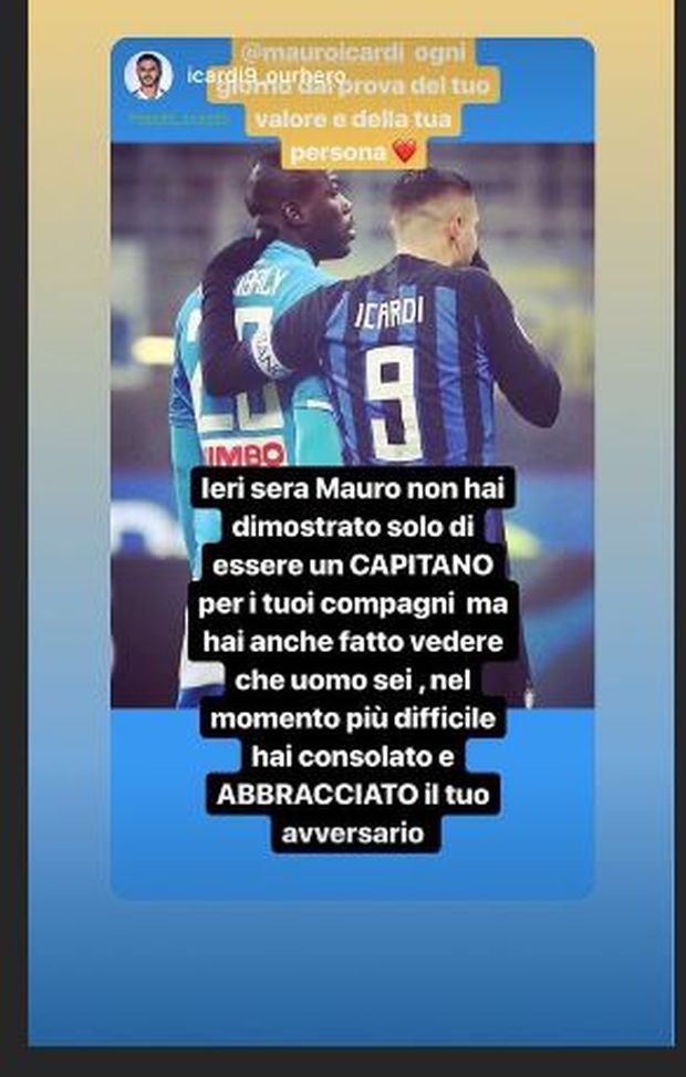 In attesa che inizi l'ennesima puntata di Tiki Taka, Wanda Nara, in queste ore ha postato sulle sue storie di Instagram i complimenti rivolti dai tifosi a Mauro Icardi, suo marito nonché suo assistito essendo lei l'agente del giocatore, rispetto alla gara con il Napoli. Forse anche un modo per esprimere il suo parere rispetto a quanto successo nella partita vinta contro gli uomini di Ancelotti e che hanno riguardato anche Koulibaly colpito dai cori razzisti di una parte dei tifosi rispetto al Meazza. "Sei un grande capitano e soprattutto un grande uomo, l'ennesima conferma di questo è arrivata ieri sera", ha scritto una tifosa. E un'altra: "Sei una pedina fondamentale dell'Inter e stai diventando il centravanti completo che tutti volevano diventassi", ha scritto un'altra. E poi: "Hai fatto vedere che uomo sei nel momento più difficile, hai abbracciato il tuo avversario per consolarlo". Tutte cose che dicono quanto tanti tifosi siano affezionati a Maurito, ma condividendo i loro pensieri Wanda ha voluto sottolineare quanto lei creda in quello che fa suo marito.