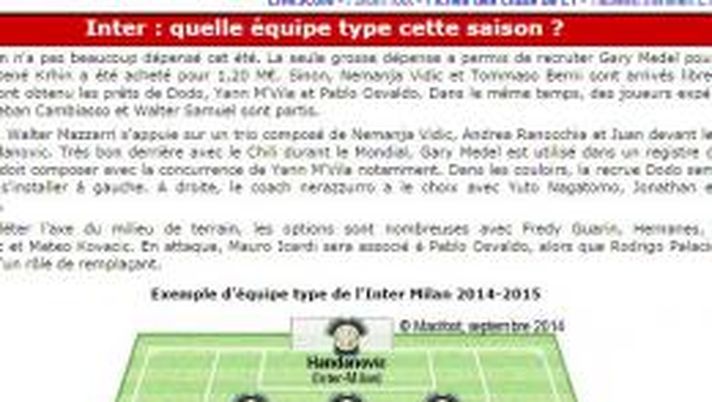 Maxi Foot, sito francese che parla di calcio, ha provato a dare i nomi per la probabile formazione tipo dell’Inter 2014-2015. Scrive che non facendo grandi spese i nerazzurri si sono rinforzati con Medel, Krhin è stato acquistato, Vidic,...