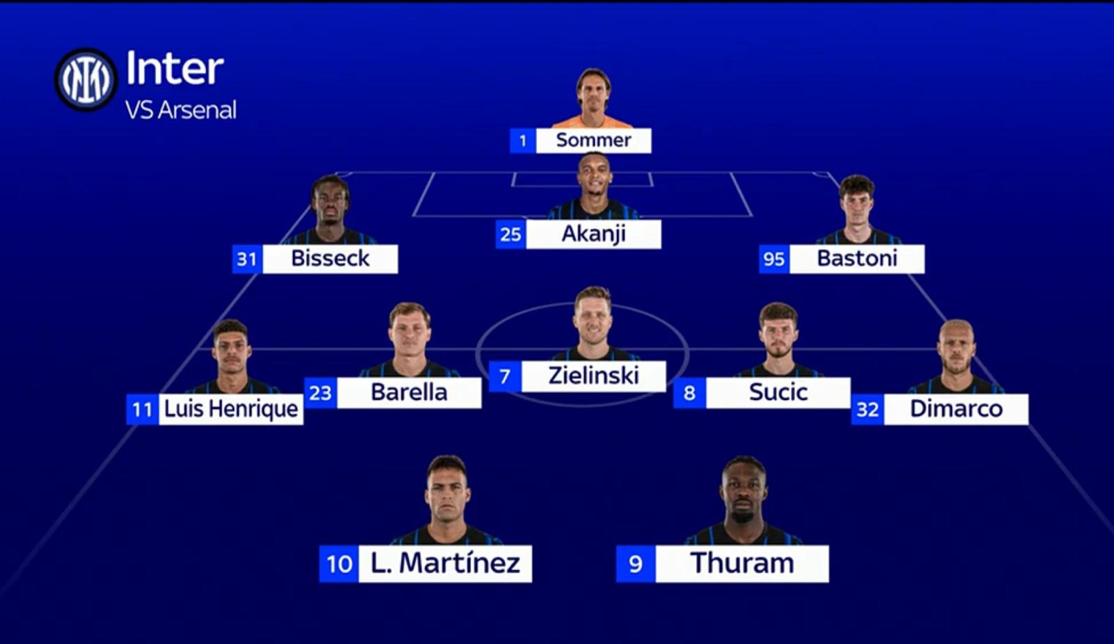 INTER: Sommer, Bisseck, Akanji, Bastoni, Luis Henrique, Barella, Zielinski, Sucic, Dimarco, Lautaro, Thuram
