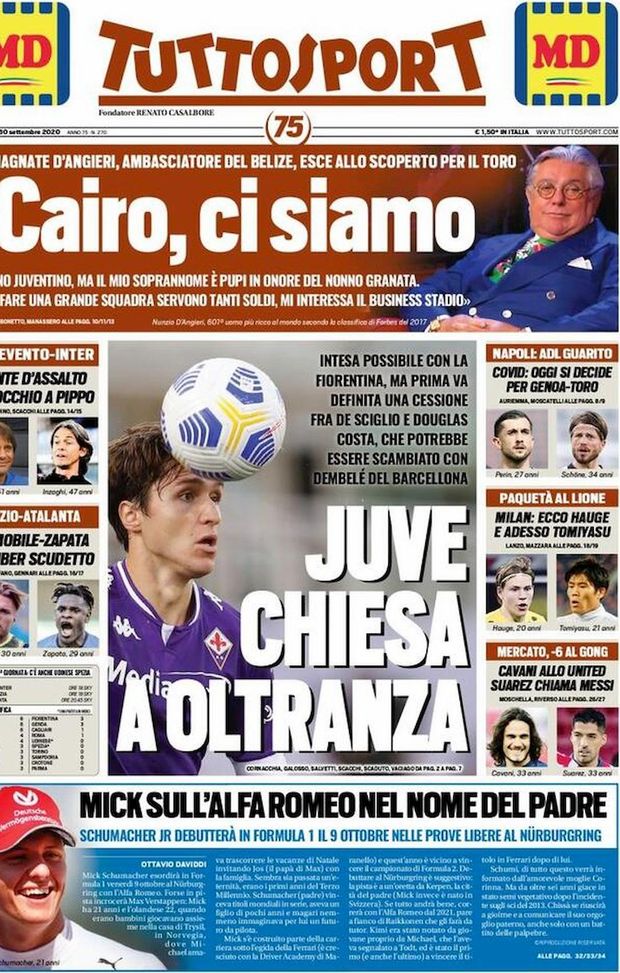 Dopo il 4-3 alla Fiorentina all'esordio in campionato (a San Siro), l'Inter di Antonio Conte affronta la prima trasferta della stagione sul campo del Benevento di Pippo Inzaghi. Su questo titola Tuttosport: "Benevento-Inter. Conte d'assalto, ma occhio a Pippo".