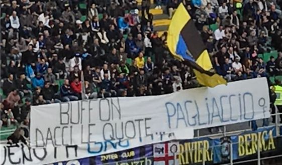 Le parole di Gianluigi Buffon non hanno lasciato indifferenti i tifosi dell'Inter. Qualche giorno fa il portiere bianconero aveva affermato polemicamente: "Se sulle cose inesistenti tu vuoi creare un caso e vuoi fare la pañolada vuol dire che sei fuori strada completamente e io non riesco ad apprezzarti e a stimarti“. E puntuale è arrivata la risposta della tifoseria nerazzurra, che ha esposto uno striscione contro il portiere bianconero: "Dacci le quote... Pagliaccio".